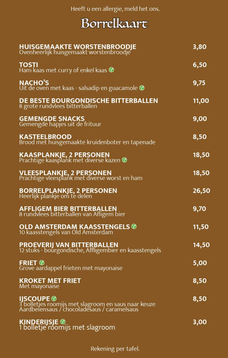 Lunch en borrel kaart